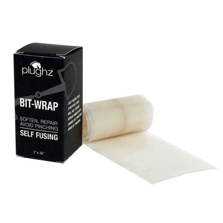 La bande silicone pour mors bit-wrap Plughz est une bande autocollante, super extensible en polymère sans latex, très résistant et non toxique à appliquer sur tout type de mors.