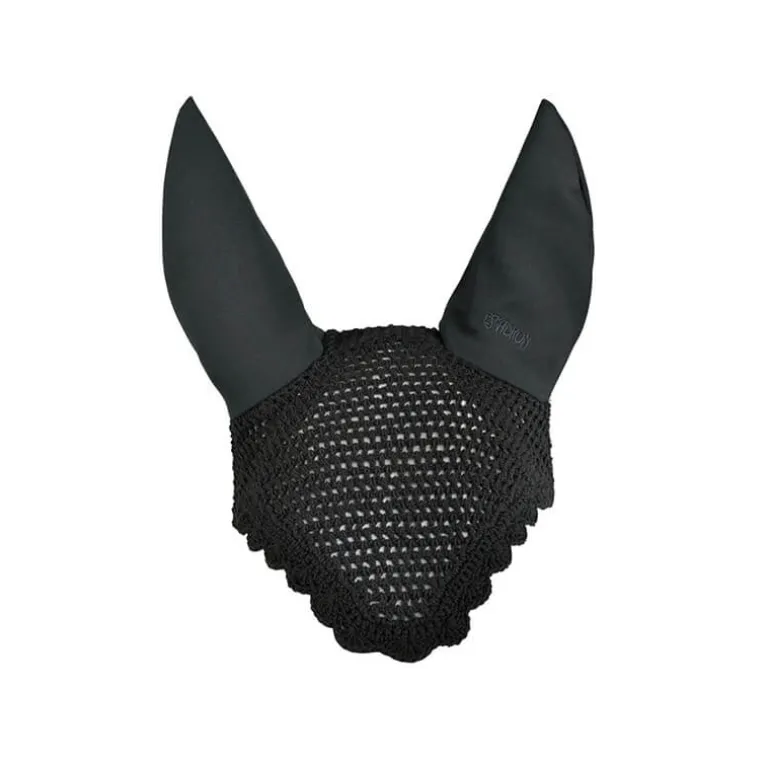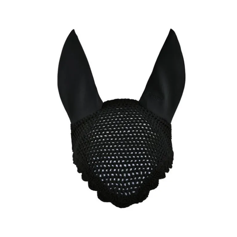 En maille souple et oreilles épaisses en polyester doublé d’un matériaux atténuant le bruit pour plus de concentration pour le cheval.