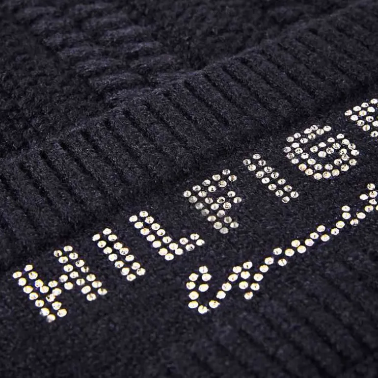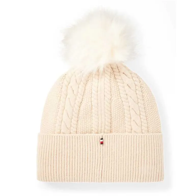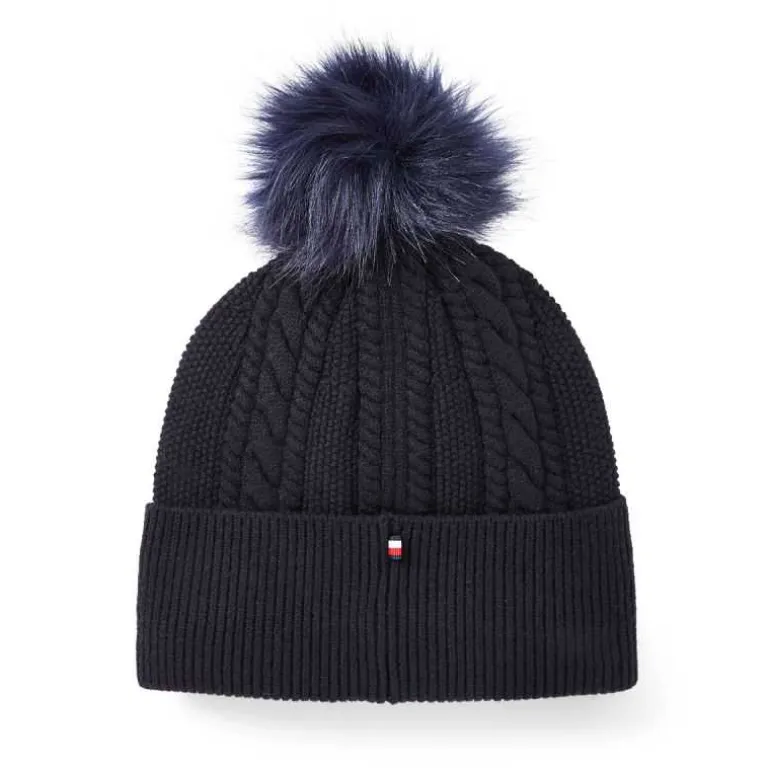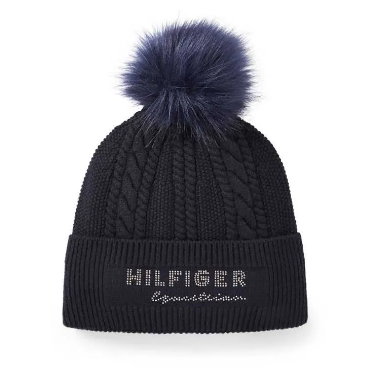 Son design est rehaussé par un pompon en fausse fourrure et un graphisme Tommy Hilfiger en strass, apportant une touche féminine et chic.