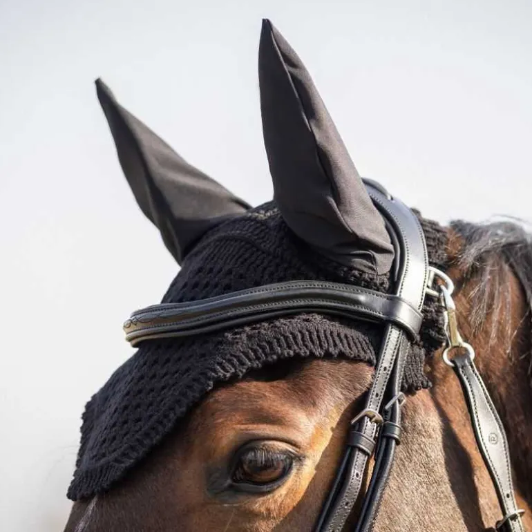 Bonnet Salerno QHP en maille de crochet, sobre, élégant et très confortable grâce à ses oreilles en tissu Softshell fin et élastique.