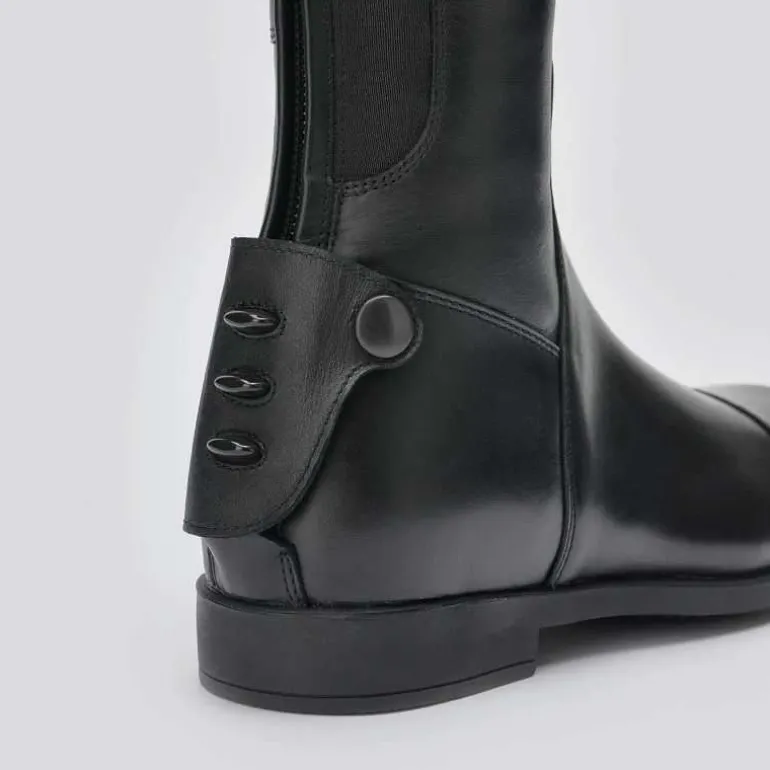 Fermetures arrières par zip zt 2 rabats en cuir à pression, dont 1 avec taquets pour éperons 3 positions.