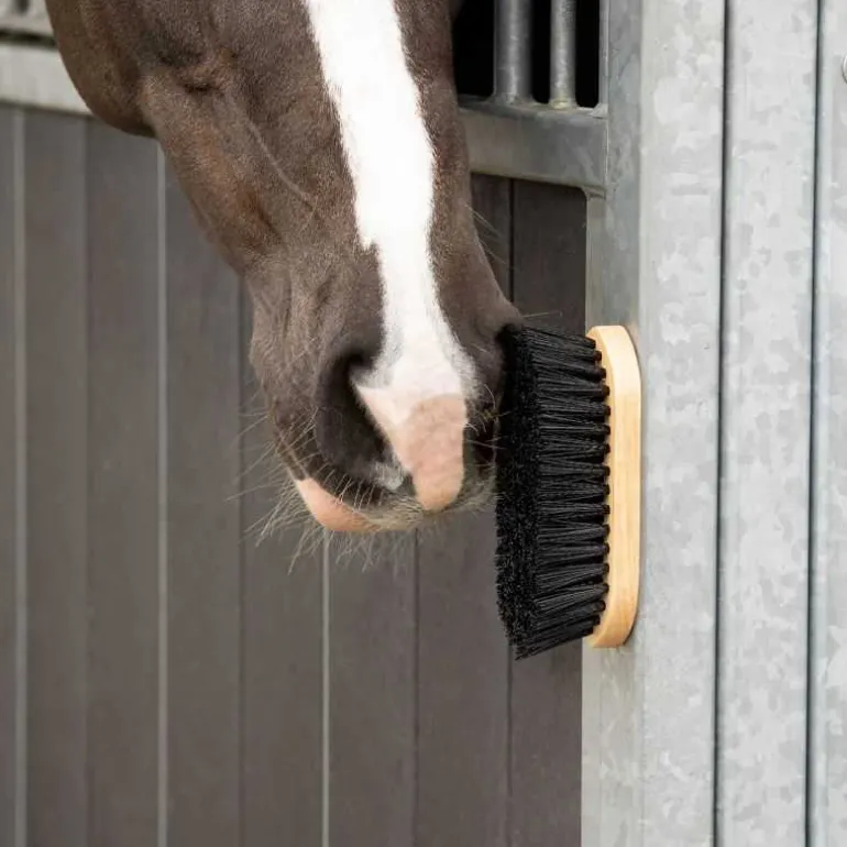 Grâce à son aimant sur le dos bois confortable dans la main, vous pouvez le poser sur tous les support en fer, barreaux et montants du box par exemple, pratique et fini de le chercher partout!