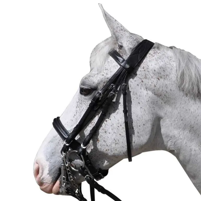 Dansez sur le carré de dressage avec élégance avec la bride pull-back Hagen Flags&Cup.