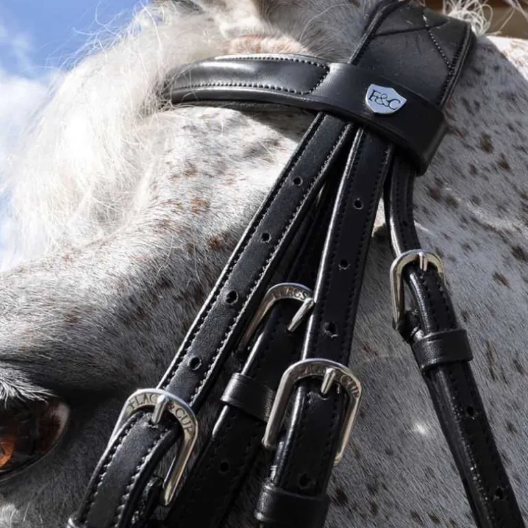 Fabriquée en cuir de très belle qualité, la bride pull-back Hagen Flags&Cup est équipé d’une têtière large, doublée et anatomique et d’une muserolle pull-back doublée pour offrir une meilleure répartition de la pression et améliorer le confort de votre cheval.