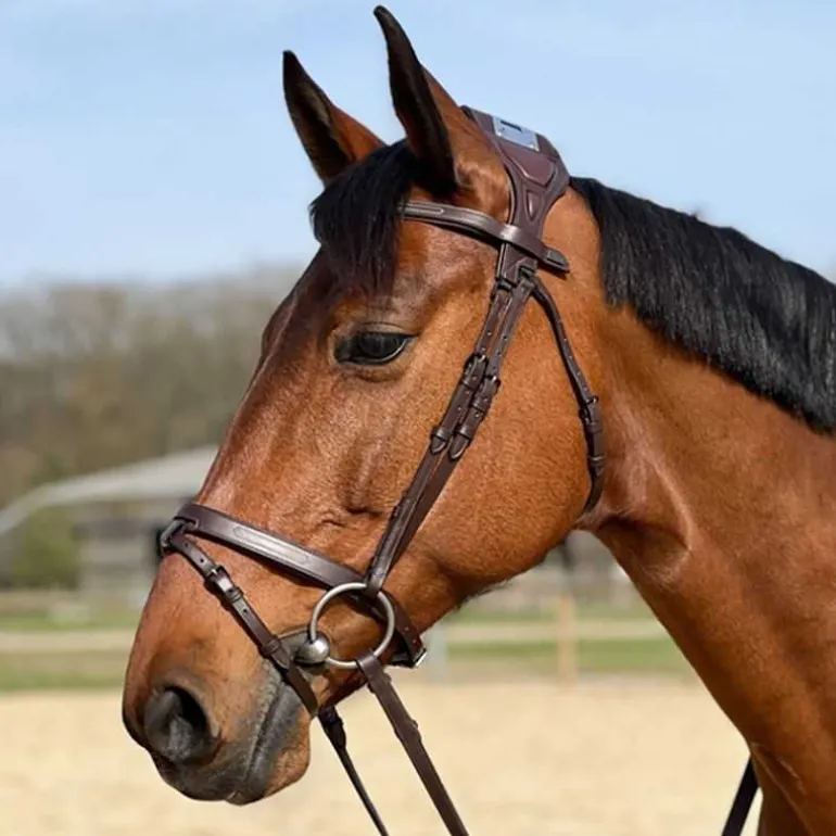 Le système de D permet une fixation fluide des montants de mors et de muserolle, garantissant un ajustement précis et stable.