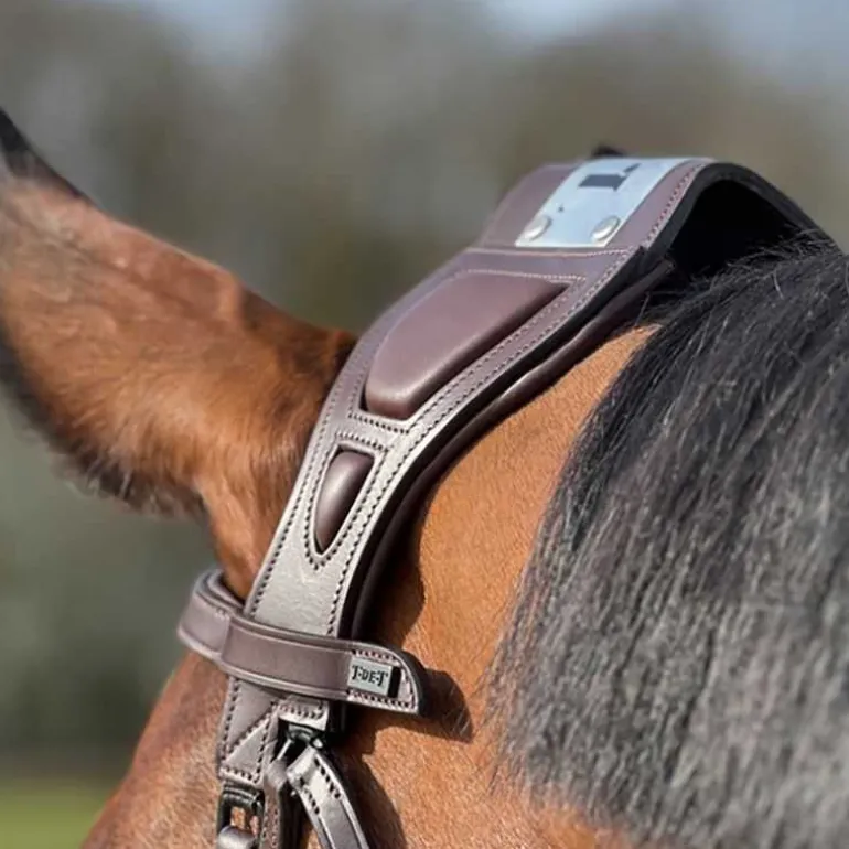Le bridon à pont Chagall T de T fait partie de la gamme brevetée conçue pour supprimer toute pression sur le ligament nuchal, essentiel à la mobilité et à la mise en tension du dos du cheval.