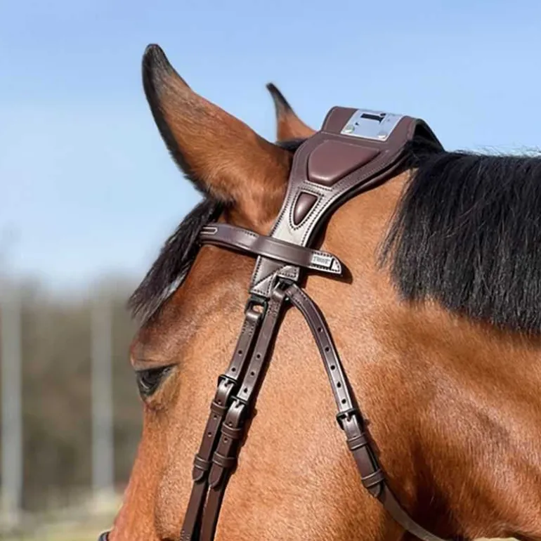 Le frontal, la muserolle et la têtière sont entièrement doublés et matelassés de mousse, pour une répartition homogène des pressions et un confort maximal.