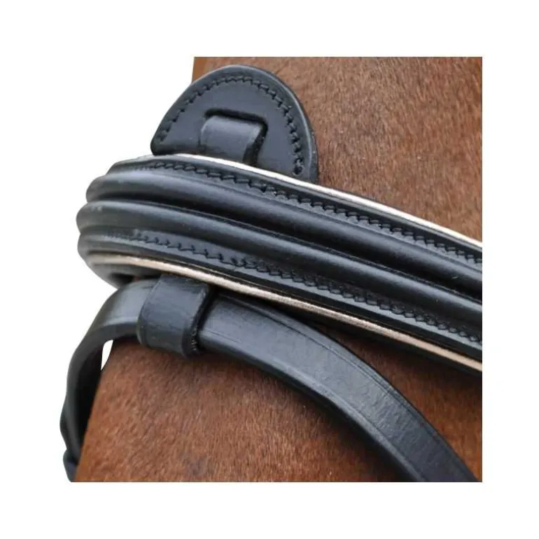 Bridon livré avec une paire de rênes caoutchouc avec bouclerie rose gold assortie.