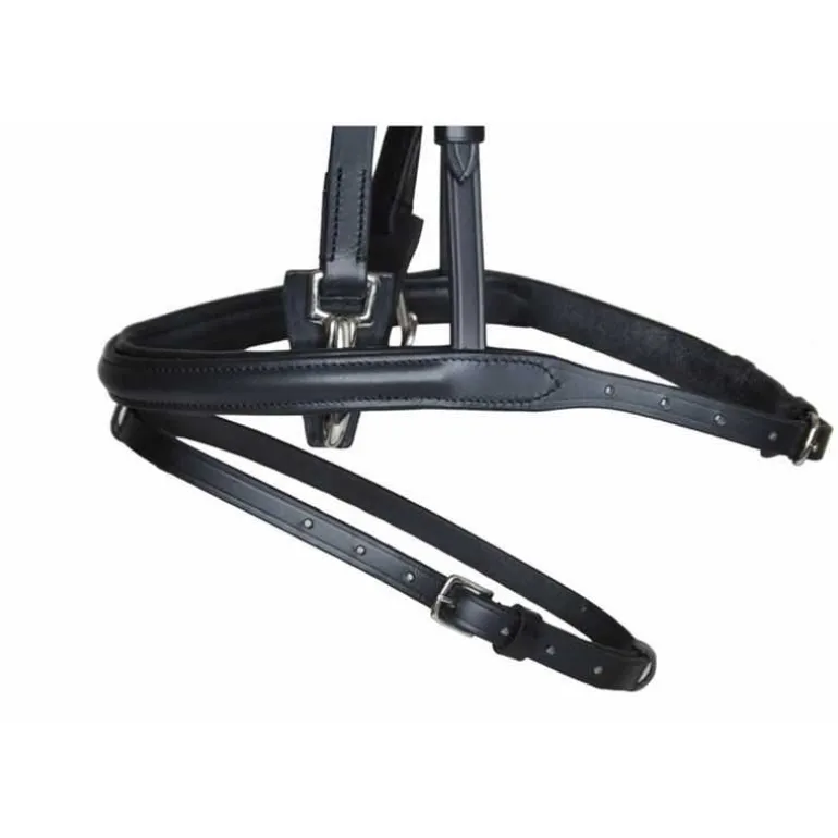 Le bridon Easy mors T de T comporte une muserolle large de 3 cm qui est doublée tout comme le frontal pour apporté du confort à votre cheval.
