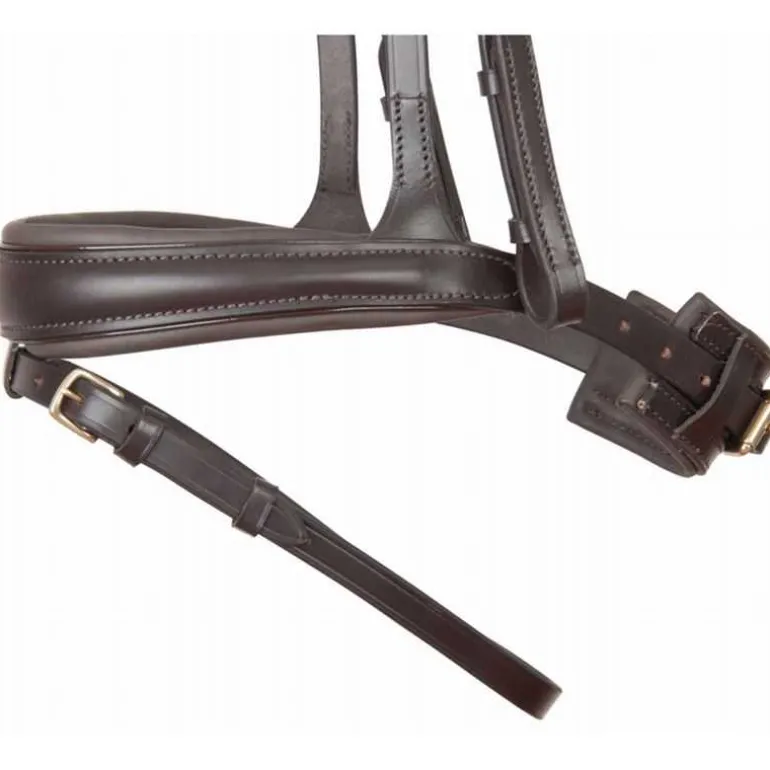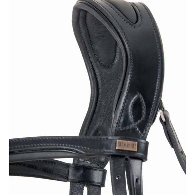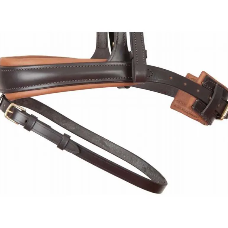 Sa têtière anatomique, ainsi que le frontal et la muserolle, sont doublés d’un pad Softy matelassé qui épouse en douceur les zones sensibles de la tête.