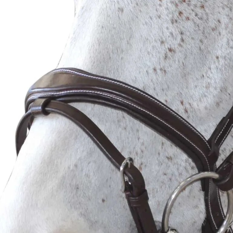 Bridon Ornella Canter en cuir plat doublé, têtière et muserolle légèrement bombés.