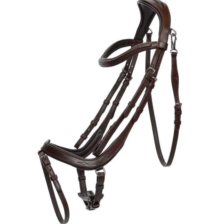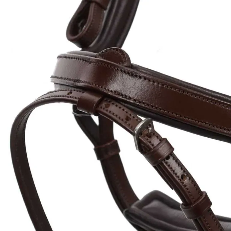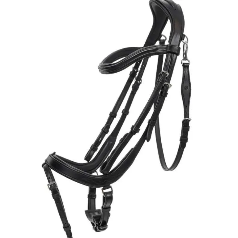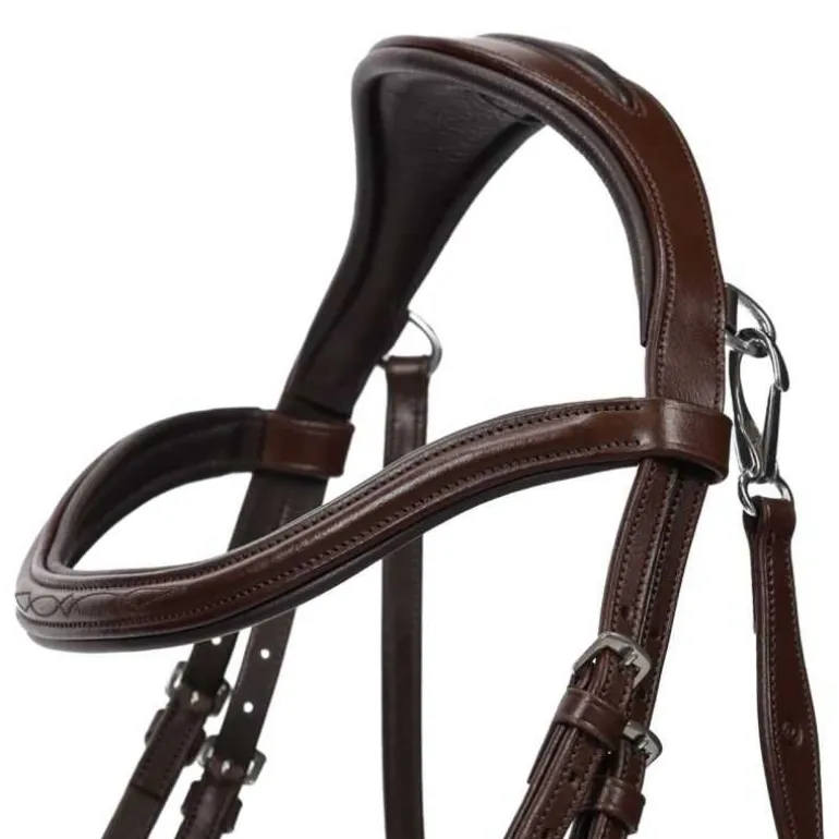 Le bridon Salerno QHP est conçu dans une forme anatomique afin d’éviter autant que possible d’appuyer sur les nerfs importants et permettre à la pression d’être répartie uniformément.