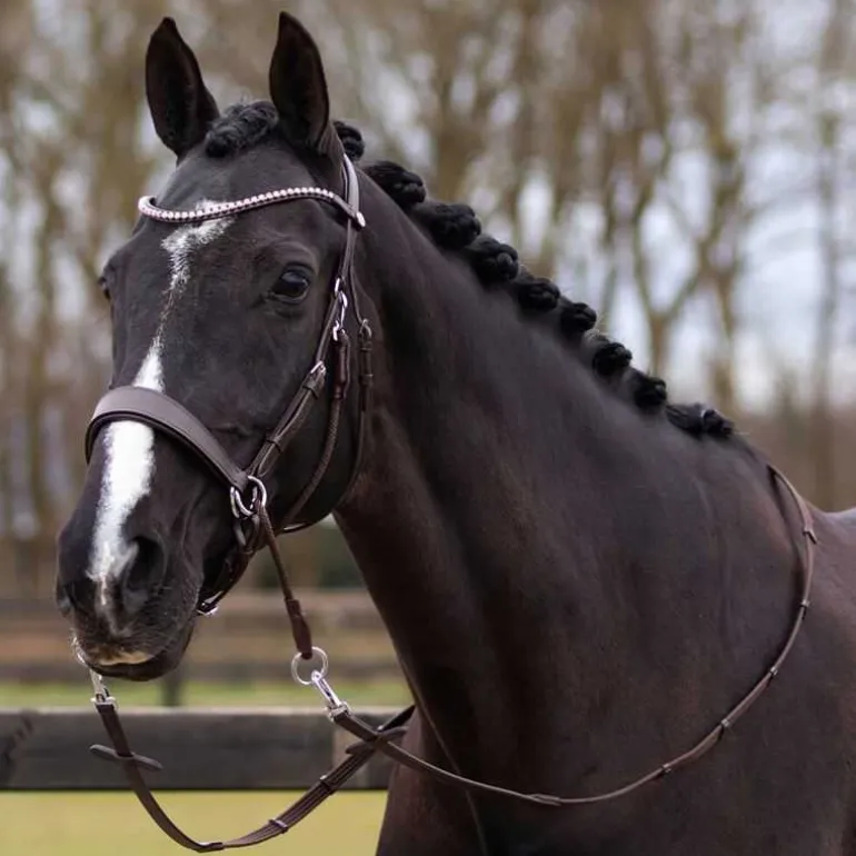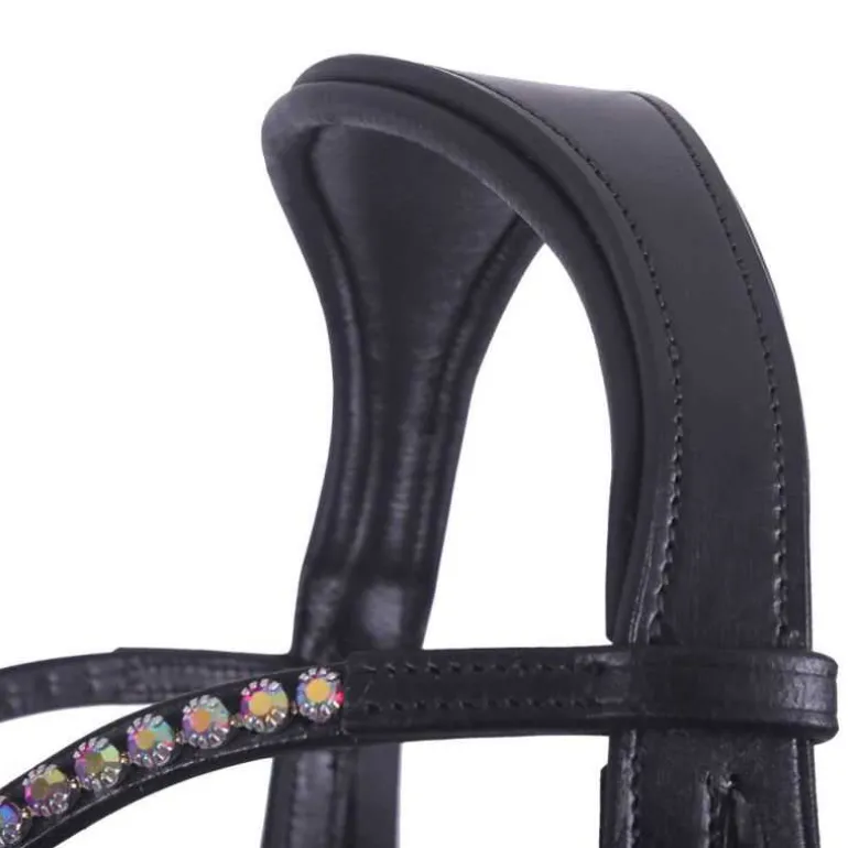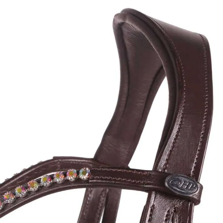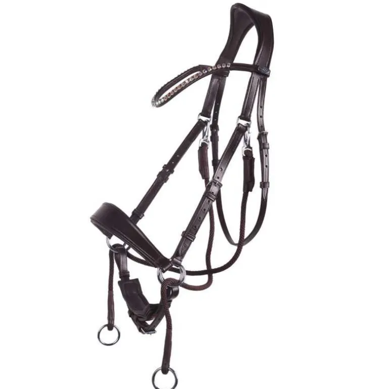 Bridon sans mors Sunna QHP, un bridon en cuir polyvalent avec une têtière anatomique très confortable qui maintient la base de l’oreille libre et répartit la pression de façon homogène.