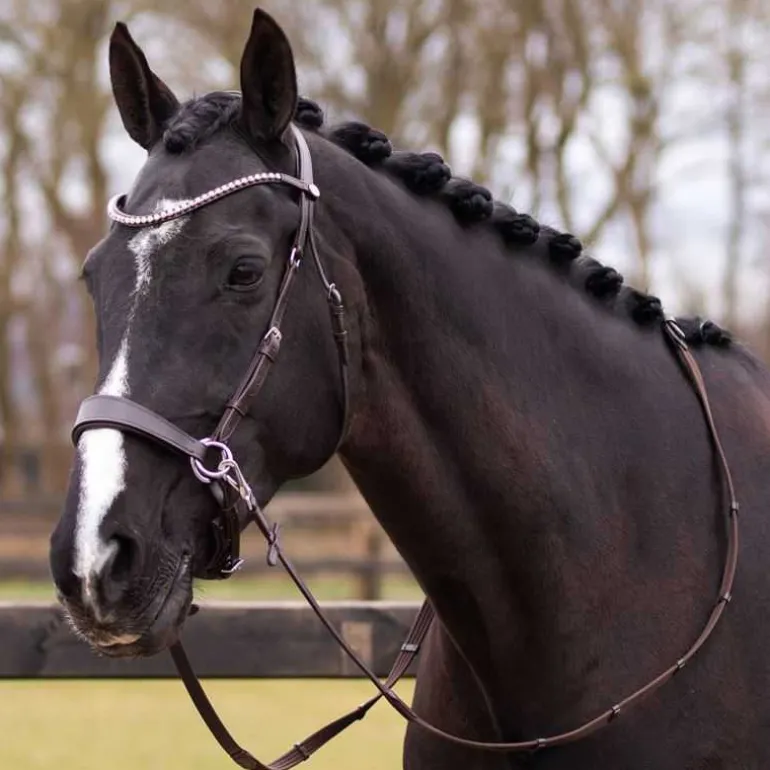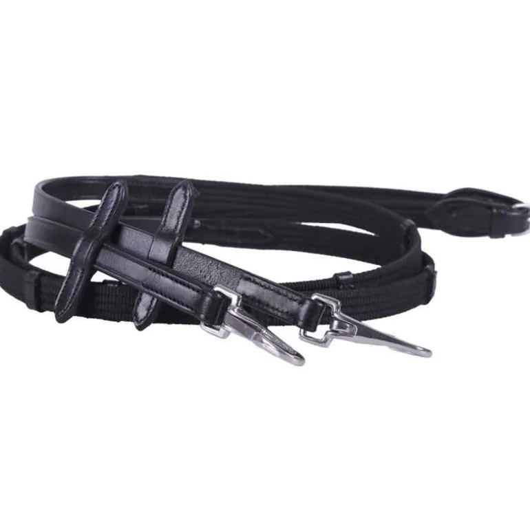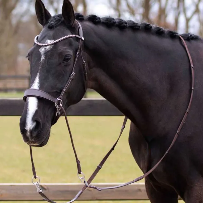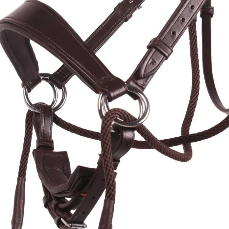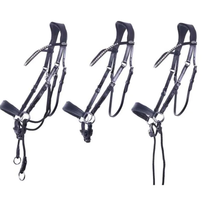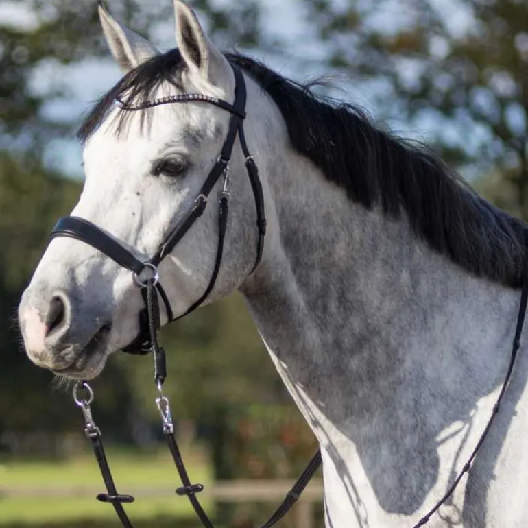 Bridon livré avec une paire de rênes en toile assortie à fixer par mousquetons.