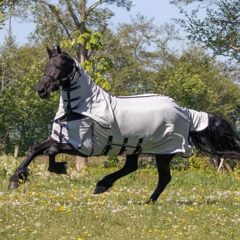 Spécialement conçue pour les chevaux frisons et baroques, la chemise anti-mouches avec cou et masque Big Neck QHP, est parfaite pour protégez votre cheval des mouches et autres insectes nuisibles.