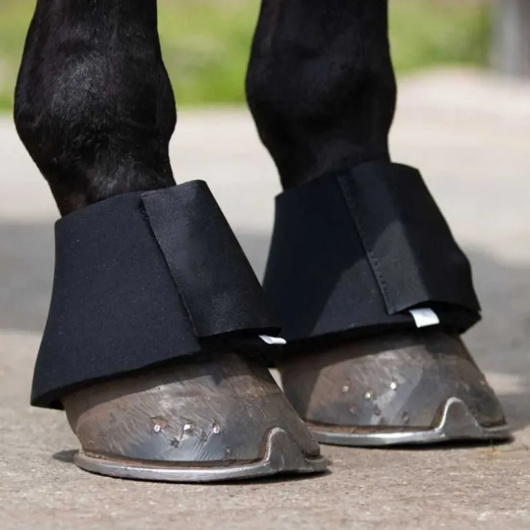 Les cloches en néoprène Q-essentials permettent de protéger les glomes la couronne et le paturon et limitent le risque que votre cheval se déferre que ce soit pendant le travail, au repos ou pendant le transport.