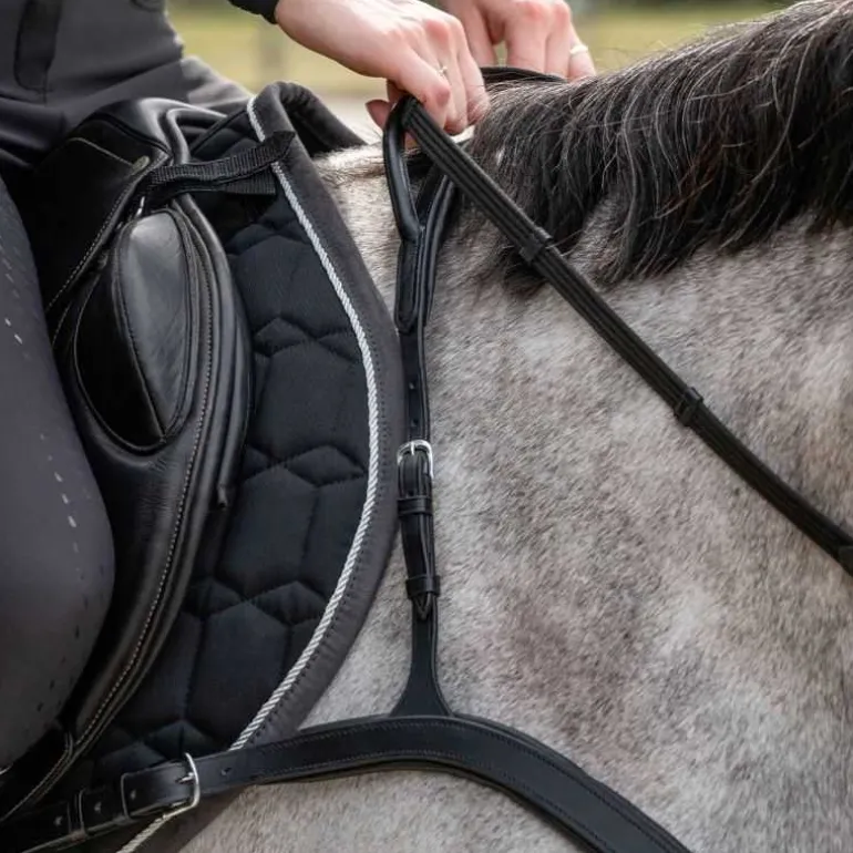 La poignée cousue en rond est idéale pour les cavaliers débutants ou pour les jeunes chevaux. Elle offre une excellente prise en main et donne au cavalier une plus grande stabilité en selle.