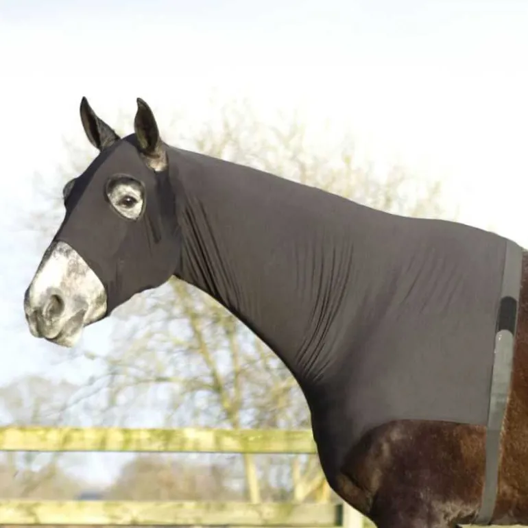 Les crins sont également protégés contre les frottements. Le protège-cou peut être attaché autour du ventre avec une bande avec une fermeture velcro.