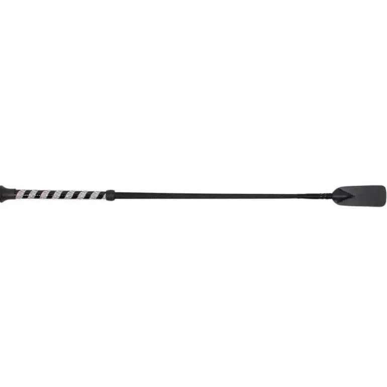Cravache d’obstacle Crystal QHP en cuir synthétique, scintillante avec sa poignée ornée de cristaux.