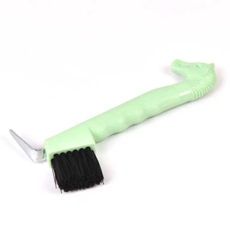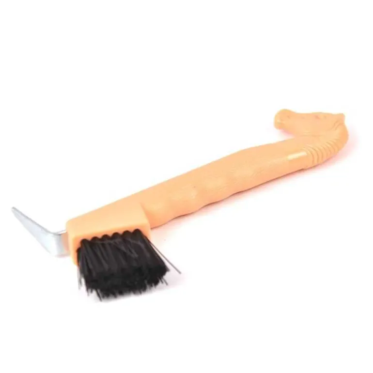 Cure-pieds Tête de cheval Horse & Go en plastique avec 1 côté cure-pieds en métal et 1 côté avec brosse, pour curer les pieds efficacement.