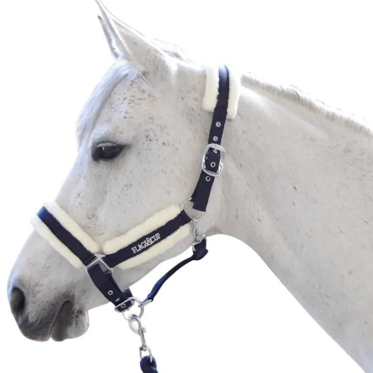 Licol nylon doublé de fourrure synthétique, têtière et muserolle réglables par boucles.