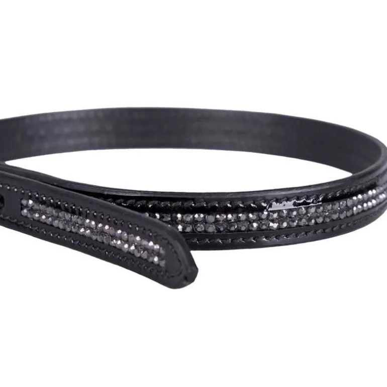 Lanières d’éperons Las Vegas QHP, en cuir verni noir avec deux rangées de strass scintillants.
