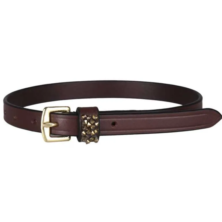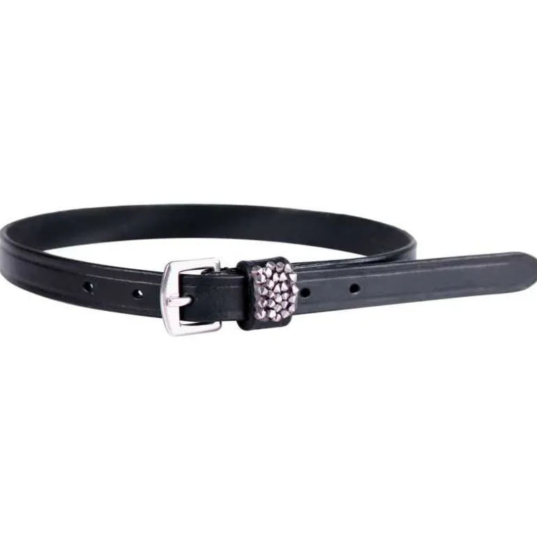 Lanières d’éperons Lupine QHP en cuir avec cristaux sur le passant créant un motif unique.