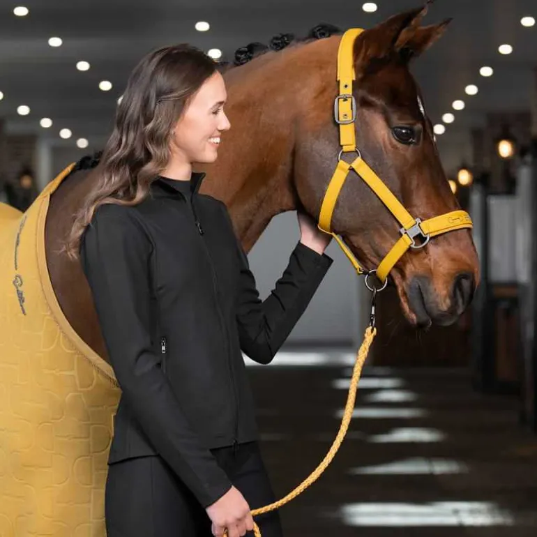 Chic et confort avec le licol Faux Leather Eskadron, un licol en cuir synthétique sur une base indéchirable, du plus bel effet, têtière et muserolle rembourrées ton sur ton.
