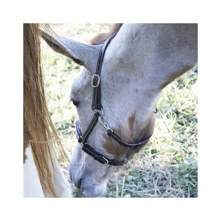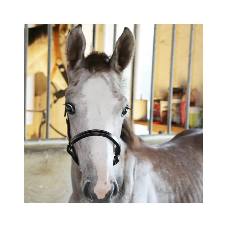 Le licol pour poulain Stationata est fabriqué dans un très beau cuir souple et résistant, avec des surpiqûres contrastées.