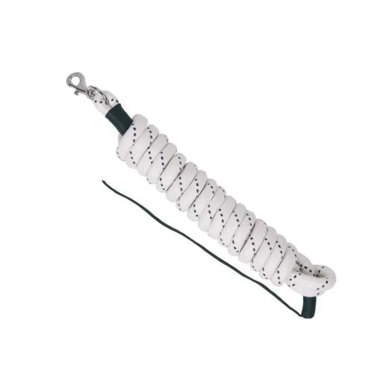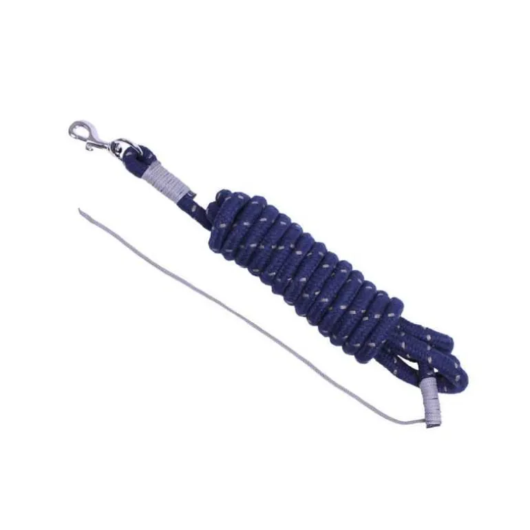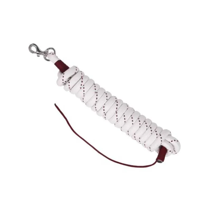Une longe avec mousqueton, très bien finie et résistante, suffisamment longue pour travailler à distance de votre cheval et en sécurité.
