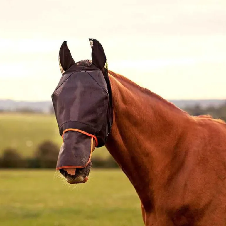 Ce masque couvre les yeux, les oreilles et le nez de votre cheval, assurant ainsi une protection complète de sa tête.