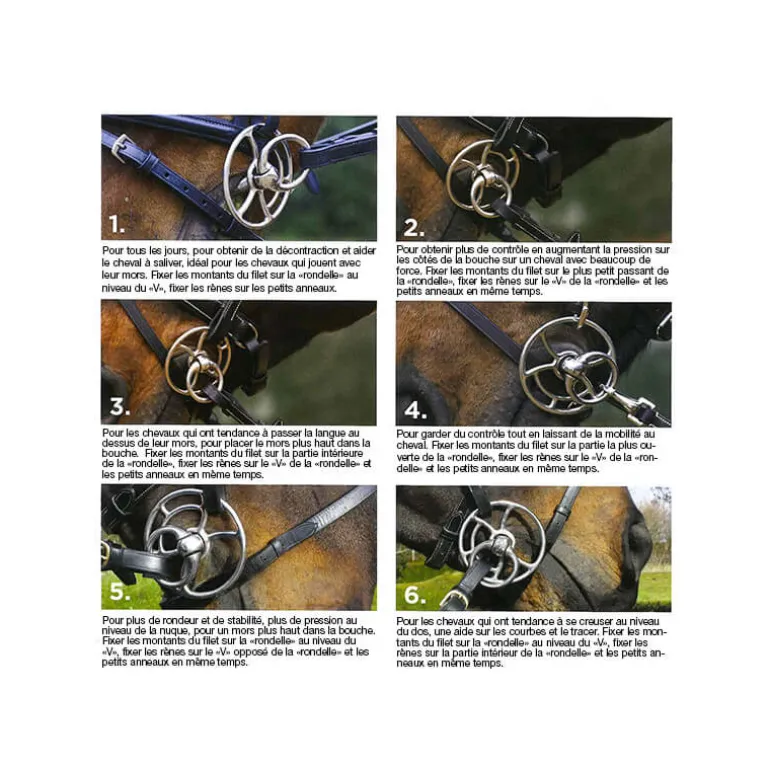 Consultez la fiche technique en photo pour plus de détails sur l’utilisation du mors « universel ».