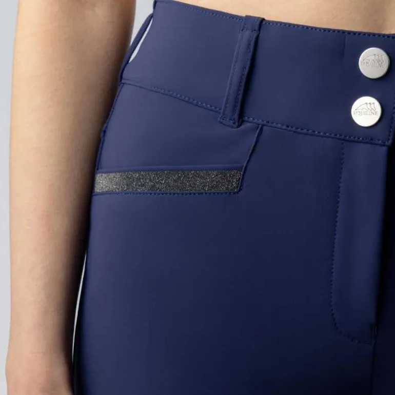 Superbe pantalon d’équitation femme Crystalek Equiline, un pantalon taille haute qui allie confort et élégance, aux détails cristal ultra chic.