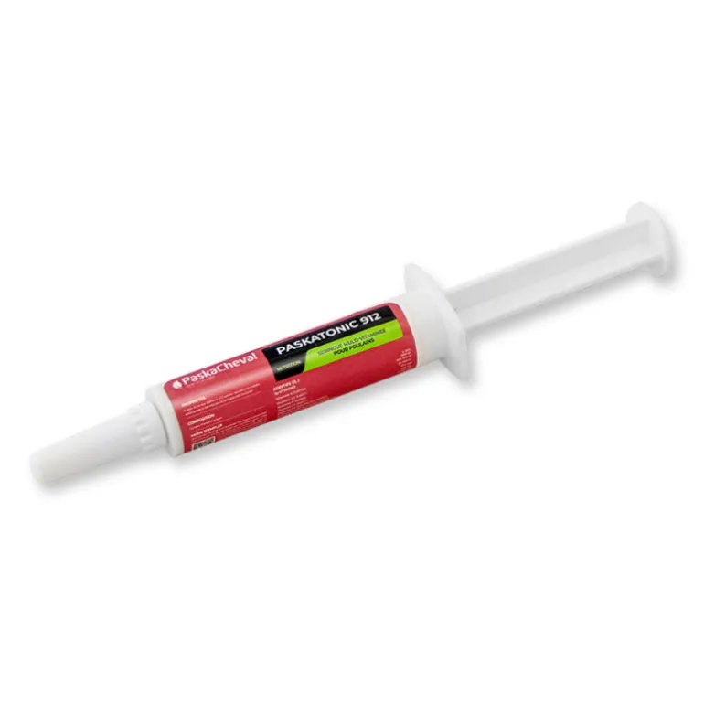 Le Paskatonic 912 Paskacheval est un complément alimentaire spécifiquement développé pour enrichir l’apport en vitamines et minéraux des chevaux d’élevage.