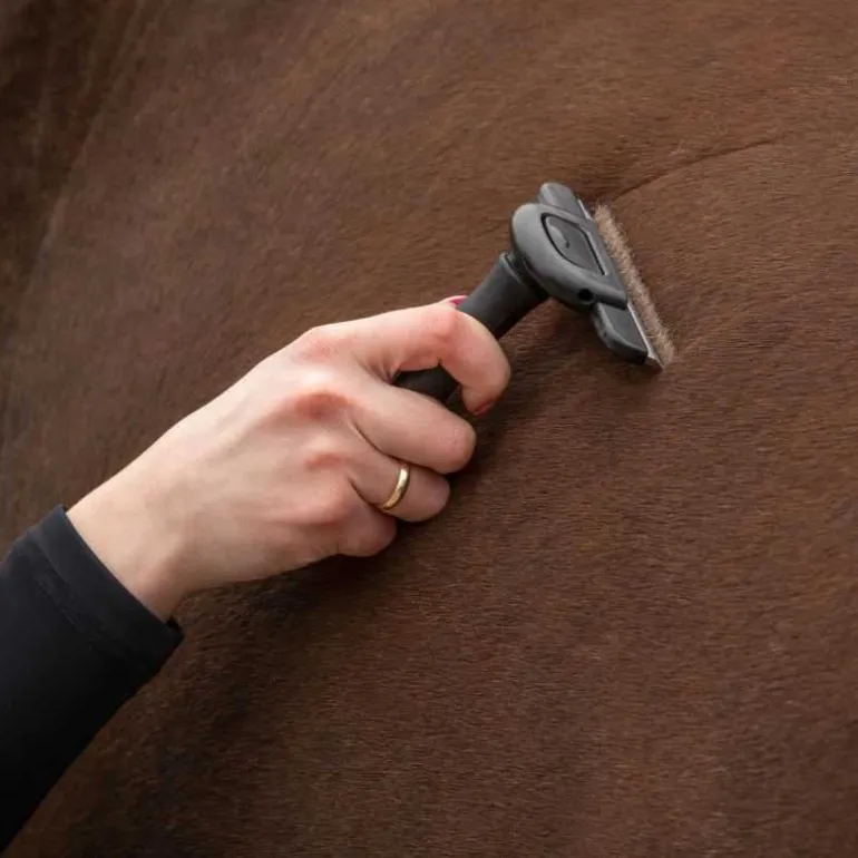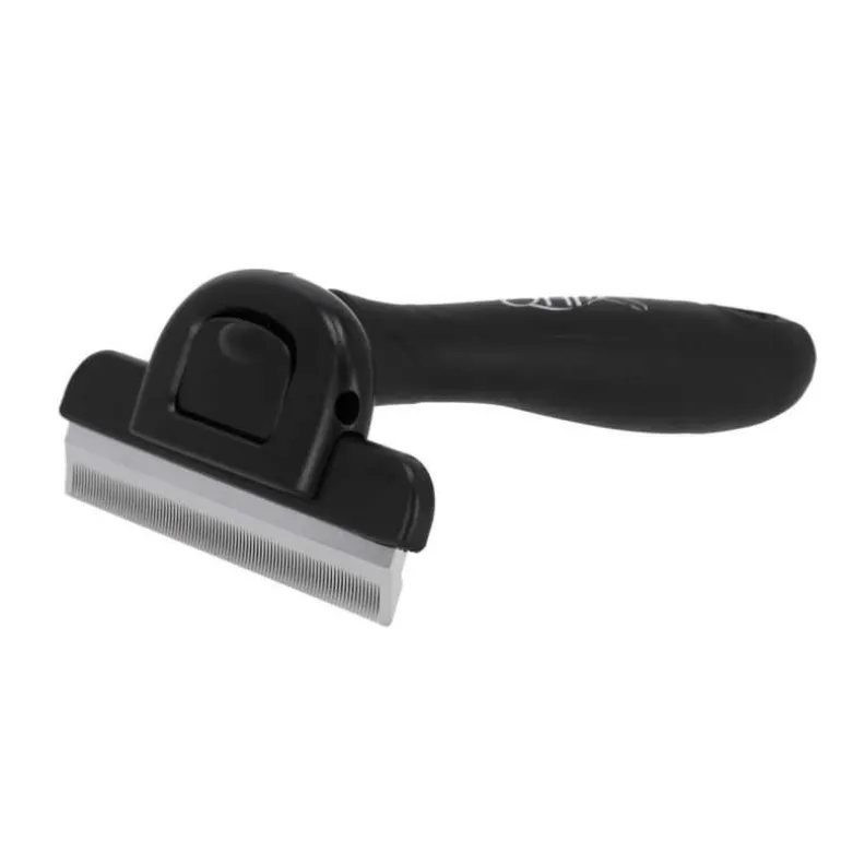 Grâce à son peigne large, fin et court, le peigne à mue QHP permet de débarrasser la robe des poils morts avec douceur et en profondeur.