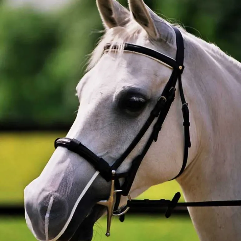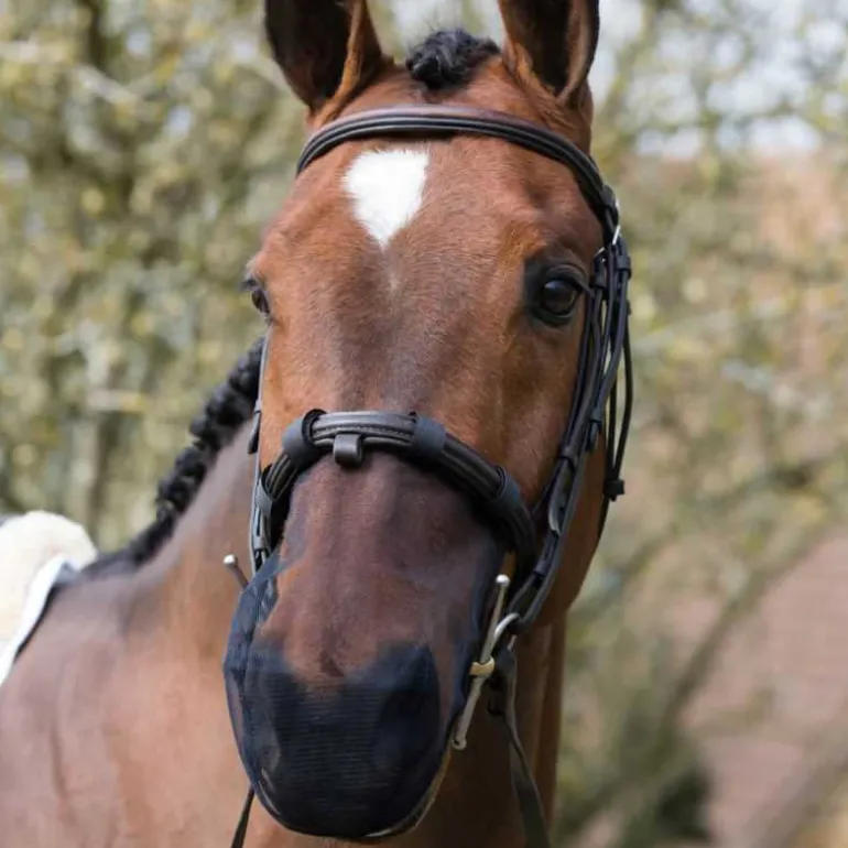 Selon une étude de la Montfort University (GB), ce protège-nez soulage 79 % des chevaux souffrant de headshaking. En protégeant les naseaux,