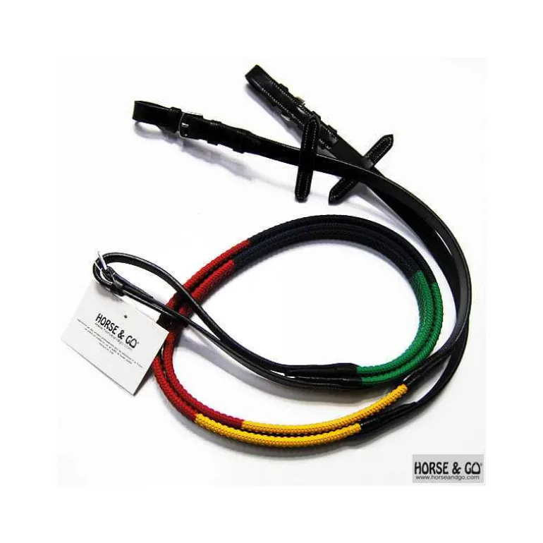 Le caoutchouc multicolore permet au cavalier de comprendre ou placer ses mains et permet à l’enseignant de donner des indications claires.