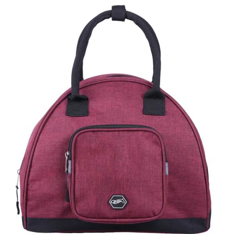 Joli sac à casque QHP en polyester hydrofuge, résistant et rembourré aux coloris légèrement chinés, pour protéger, transporter et ranger votre casque avec style.