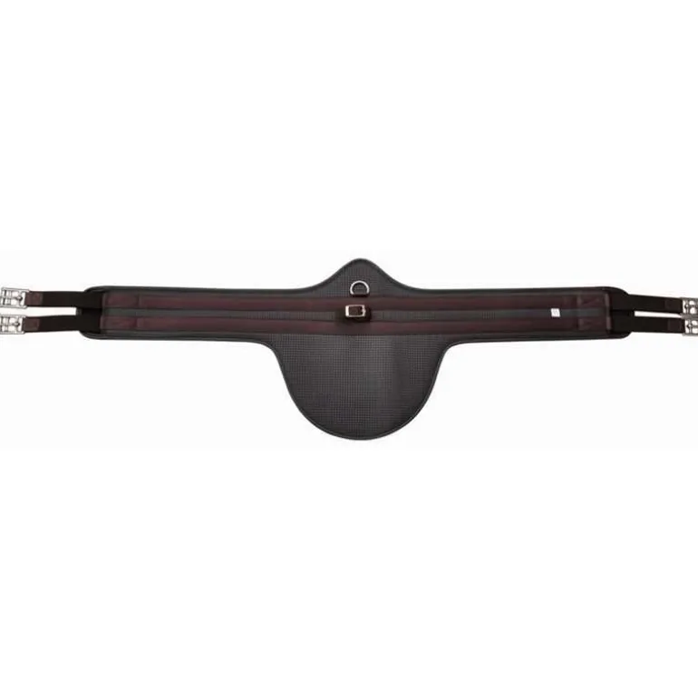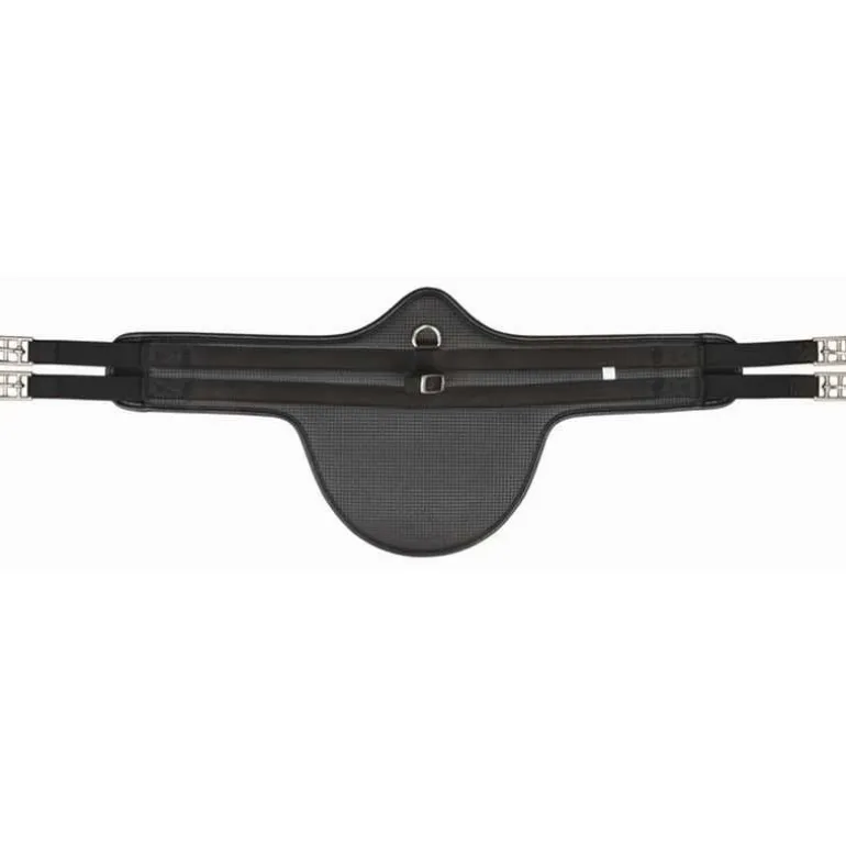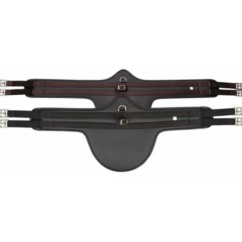 Les boucles à rouleaux et les sanglons élastiques de chaque côté facilitent l’ajustement et accompagnent le mouvement du cheval.