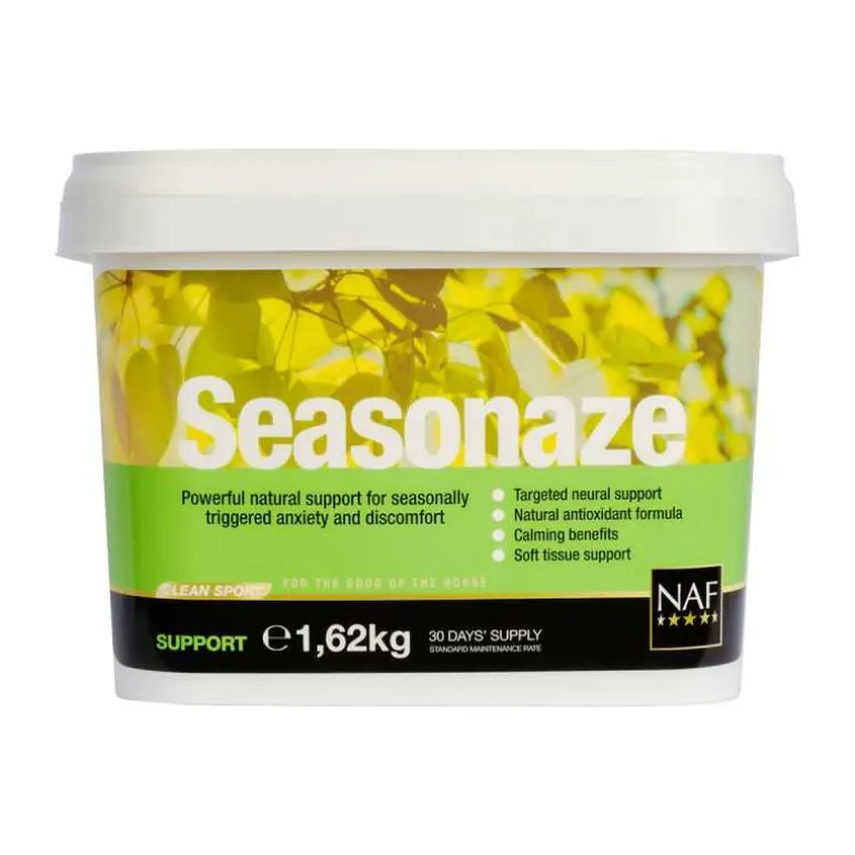 Seasonaze de NAF est un complément formulé pour apporter un soutien nutritionnel ciblé aux chevaux sujets à l’anxiété saisonnière.