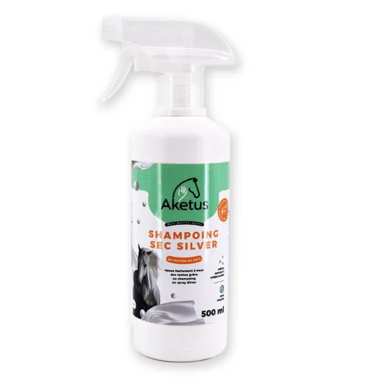 Avec le shampoing sec Silver, les tâches de la robe, de la queue et de la crinière n’ont jamais été aussi faciles à faire disparaître.