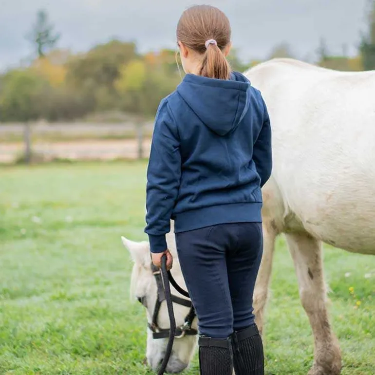 Avec sa capuche réglable par un ruban, sa taille et ses poignets « tempêtes » en fines mailles côtelées, il protège le petit cavalier du froid et du vent.