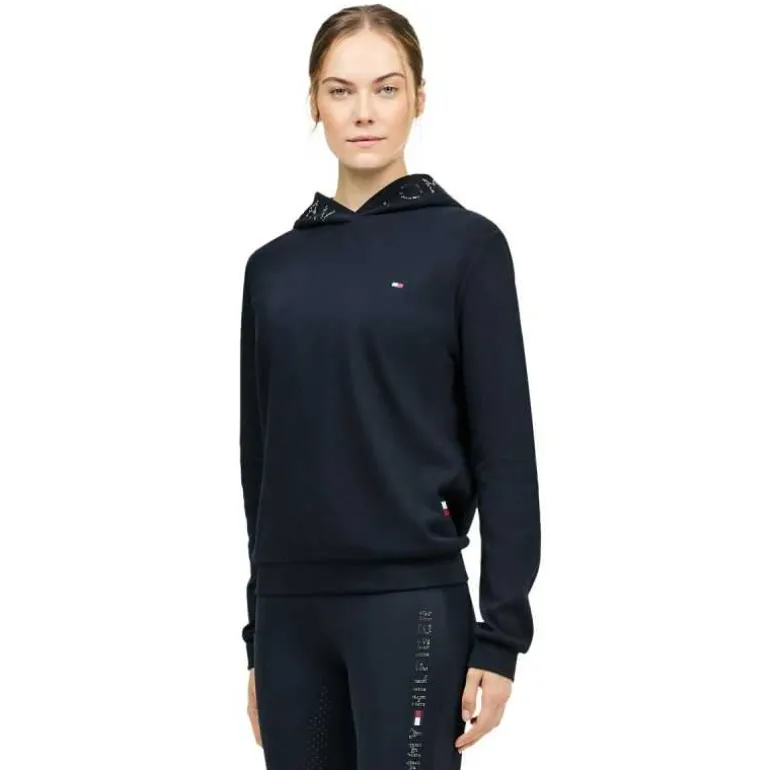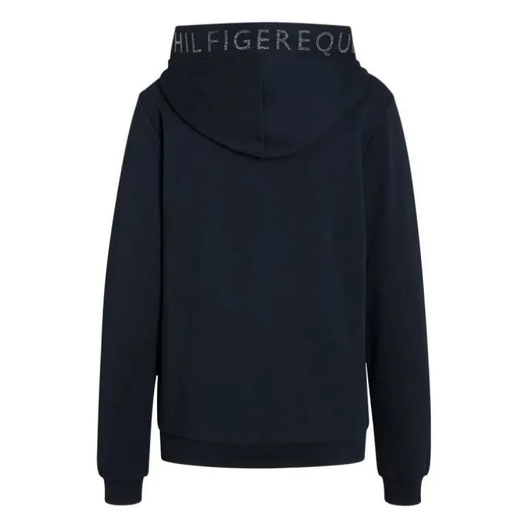 Sa coupe féminine en matière stretch épouse les mouvements avec fluidité, tandis que le motif Tommy Hilfiger en strass sur la capuche capte la lumière à chaque pas.