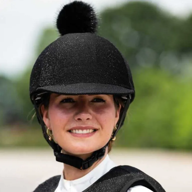 Toque pour casque Glitter QHP à paillettes, scintillante avec un joli pompon.
