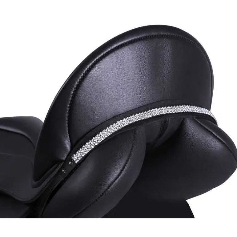 Personnalisez votre selle avec le bijou de selle Verbena QHP et son tissu recouvert de de strass argentés de deux tailles différentes.