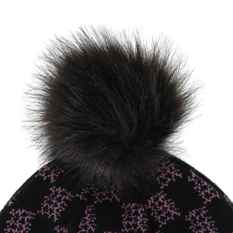 Bonnet enfant Lize QHP, un imprimé original et un joli pompon pour rester bien au chaud.