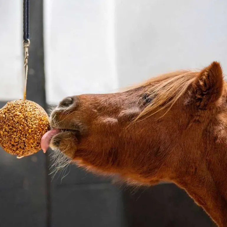 Pleine de délicieuses céréales (avoine, orge, maïs et blé complet), elle est conçue pour s’accrocher dans le box de votre cheval et lui créer une occupation toute en gourmandise.