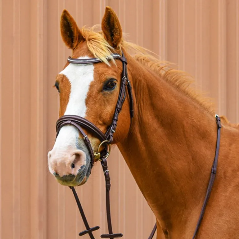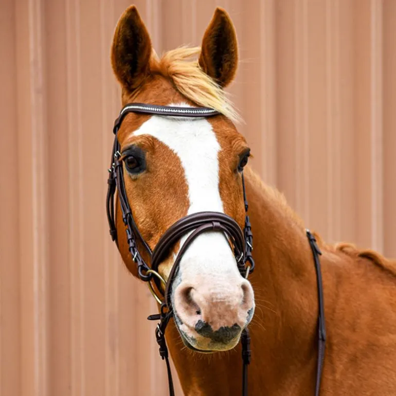 Le bridon combiné Stationata apporte une touche de glamour à votre sellerie avec son frontal en strass.