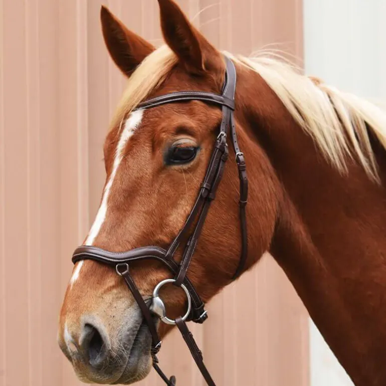 La muserolle est équipée d’un noseband, non amovible, pour limiter l’ouverture de la bouche de votre cheval.