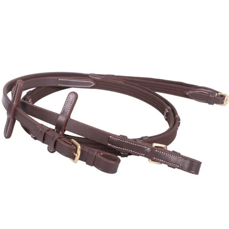 Ce bridon est livré avec des rênes en toile assorties avec fermeture à boucle.